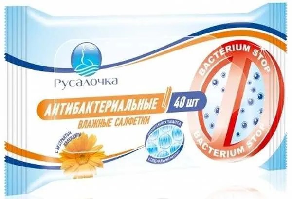 САЛФЕТКИ АНТИБАК влажные с экстром календулы 40 штук РУСАЛОЧКА 430310