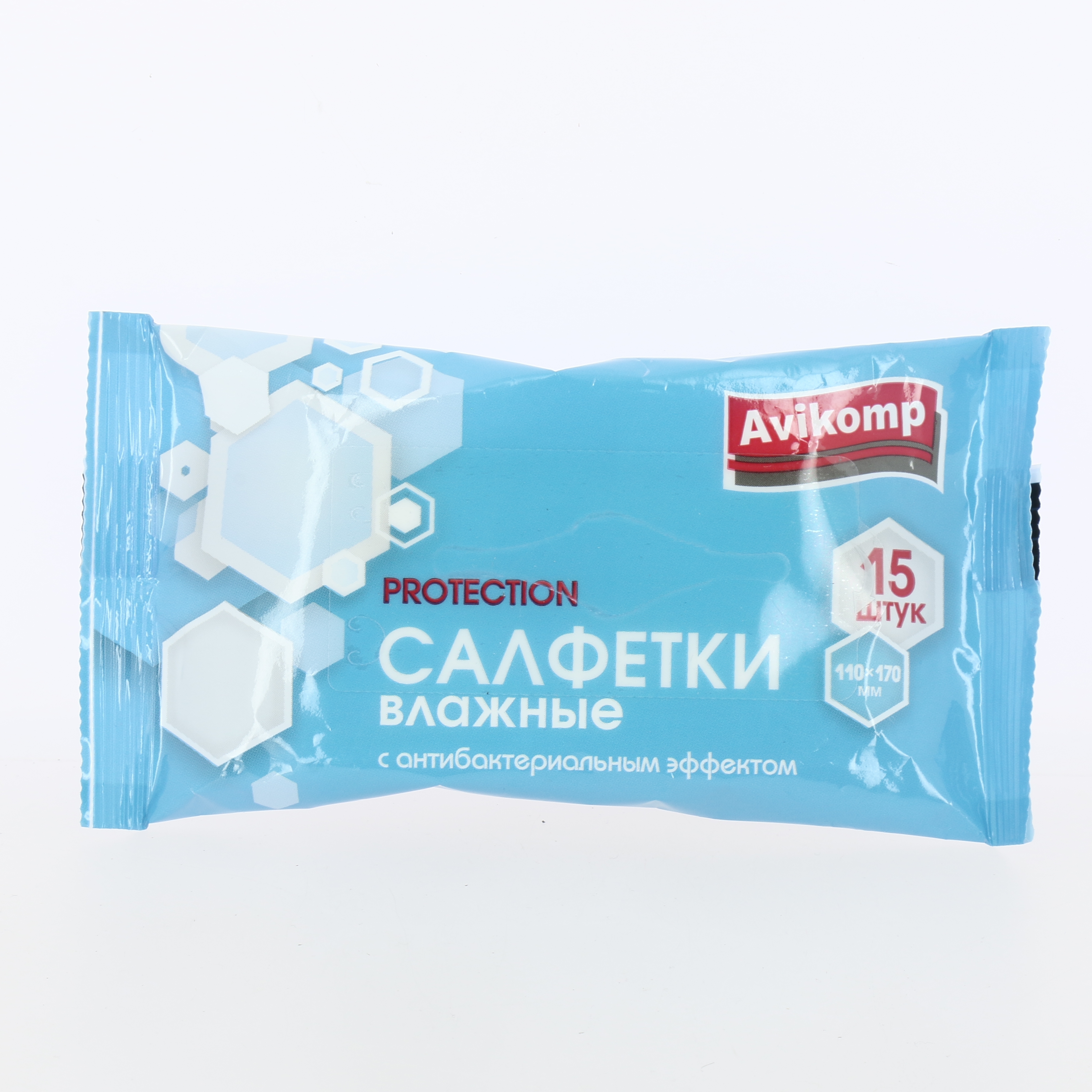 Салфетки влажные 15шт Avikomp Protection с антибактериальным эффектом 89437