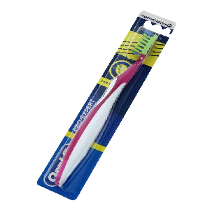 Всемирно известные бренды продуктов для гигиены и профилактики заболеваний зубов и полости рта Blend-a-Med и Oral-B выпускаются американской компанией Procter & Gamble – одним из лидеров рынка потребительских товаров в этой области. Зубная щетка с щетиной среднейжесткости марки Oral-B предназначена для комфортной и эффективной чистки зубов. Щетка изготовлена из прочных пластика и нейлона, она подавляет рост бактерий на щетинках в течение трех месяцев. Многосекционные щетинки бережно относятся к зубной эмали и помогают очищать налет с труднодоступных зон, а щетинки, расположенные под углом, оптимизируют чистку межзубных поверхностей. Благодаря внешнимстимуляторам, щетка обеспечивает нежный массаж десен. Эргономичная ручка щетки удобно ложится в руку и не скользит в ней при использовании. Как только цветные щетинки станут более бледными, щетку необходимо заменить.