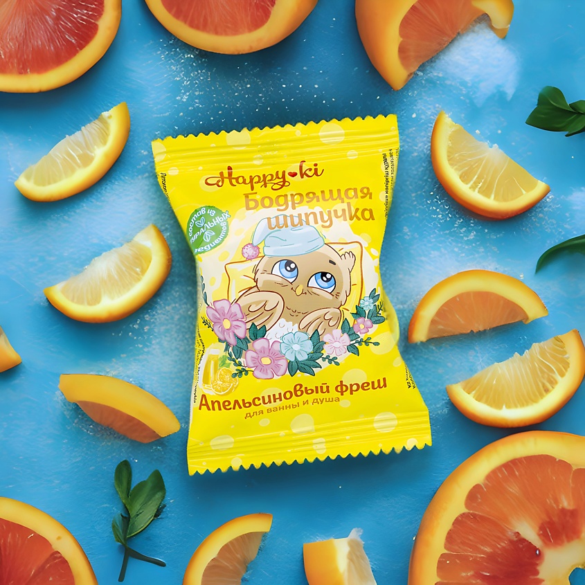 Средство шипучее для ванн 40г ЛАБОРАТОРИЯ КАТРИН Happiki Бодрящая шипучка