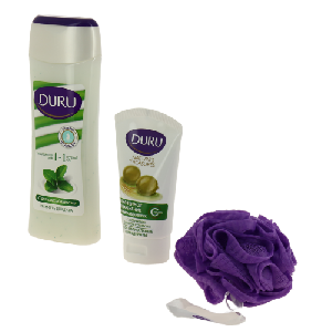 Набор подарочный Duru гель для душа Зеленый чай 250мл+крем для рук Олива 75 мл+мочалка,509024