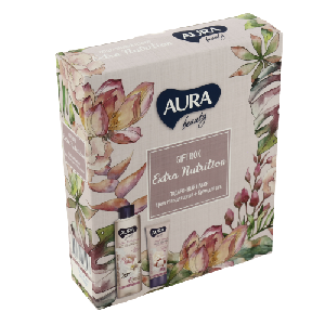 Набор подарочный Aura Beauty Extra Nutrition Крем-гель для душа Сливочная ваниль и Пион 250мл + Крем для рук Тонизирующий 75мл 10482