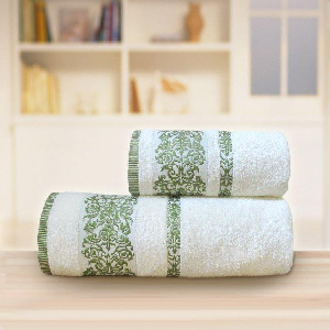Махровое полотенце производства Азербайджан, из качественной 100% хлопковой пряжи. Нежный цвет полотенца контрастирует с красивым жаккардовым бордюром. Полотенце очень украсит вашу ванную комнату! Плотность полотенца 360г/м2.