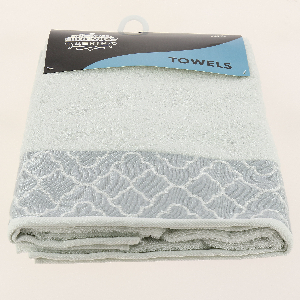Полотенце 70х140см ПОСУДА ЦЕНТР махровое белый/серый хлопок