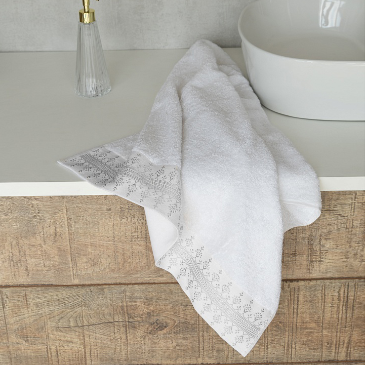 Полотенце 70x130см DE'NASTIA НЕЖНОСТЬ белый/серебряный хлопок 100%