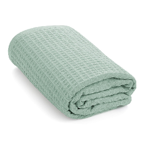 Полотенце вафельное 90x150см DE'NASTIA для бани/сауны 320гр голубой хлопок