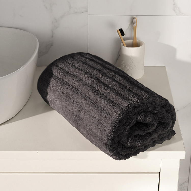 Полотенце махровое 70x130см DE'NASTIA Узкая Волна 500гр темно-серый хлопок