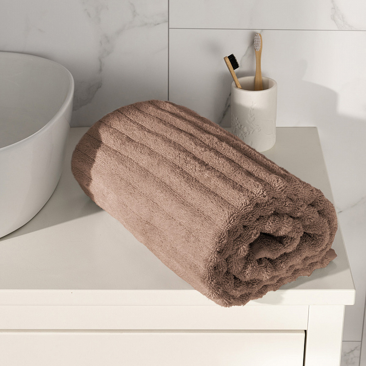 Полотенце махровое 70x130см DE'NASTIA Узкая Волна 500гр коричневый хлопок