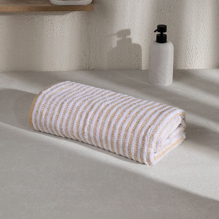 Полотенце махровое 70x140см DE'NASTIA Motive полоски 510гр бежевый хлопок