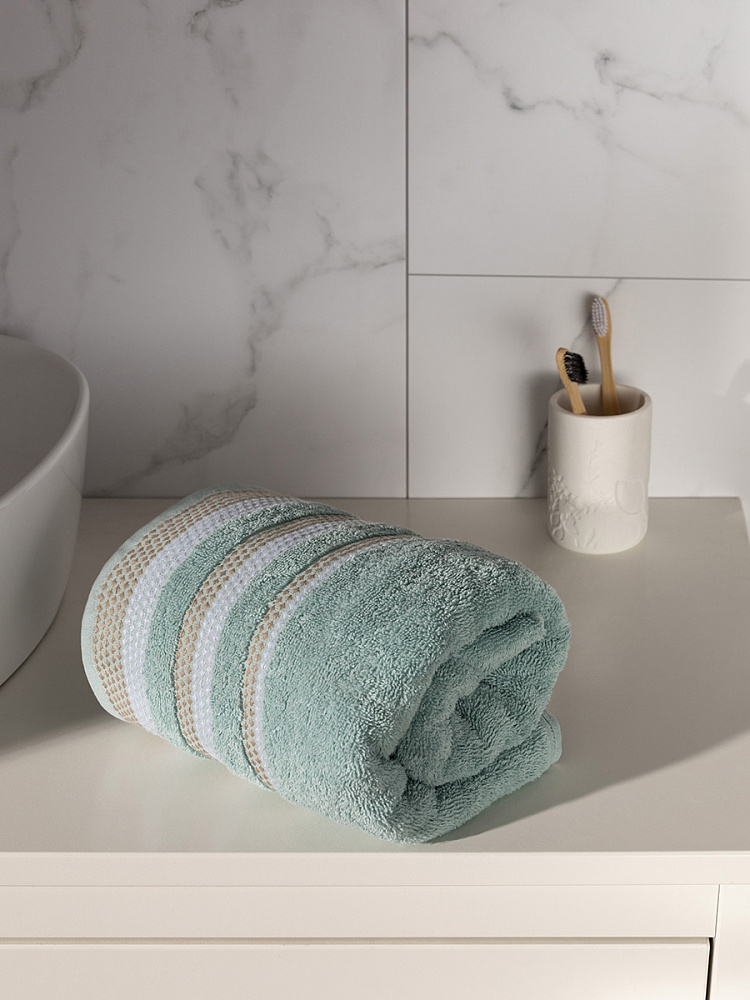 Полотенце махровое LUCKY Бордюр точки 450gsm 70x140 100% хлопок, голубой D100293