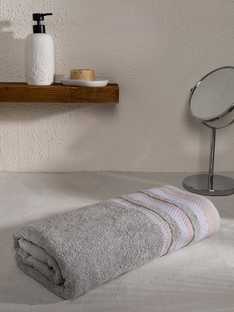 Полотенце махровое LUCKY Бордюр точки 450gsm 70x140 100% хлопок, серый D100295