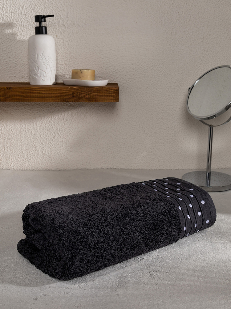 Полотенце махровое LUCKY Бордюр горошек 500gsm 70x140 100% хлопок, графит D100410