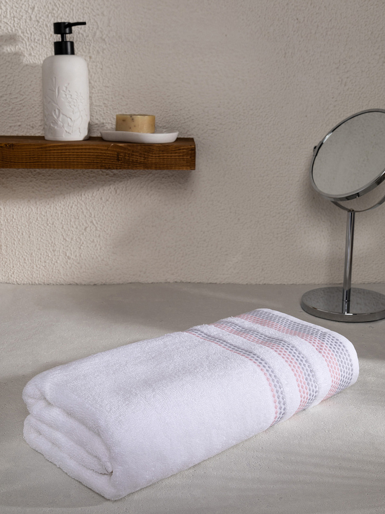 Полотенце махровое LUCKY Бордюр точки 450gsm 70x140 100% хлопок, белый/ розовый D100408