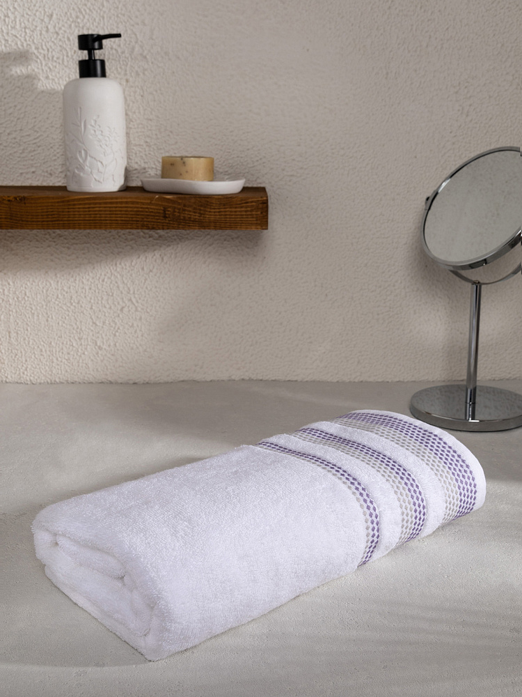 Полотенце махровое LUCKY Бордюр точки 450gsm 70x140 100% хлопок, белый/ фиолетовый D100407
