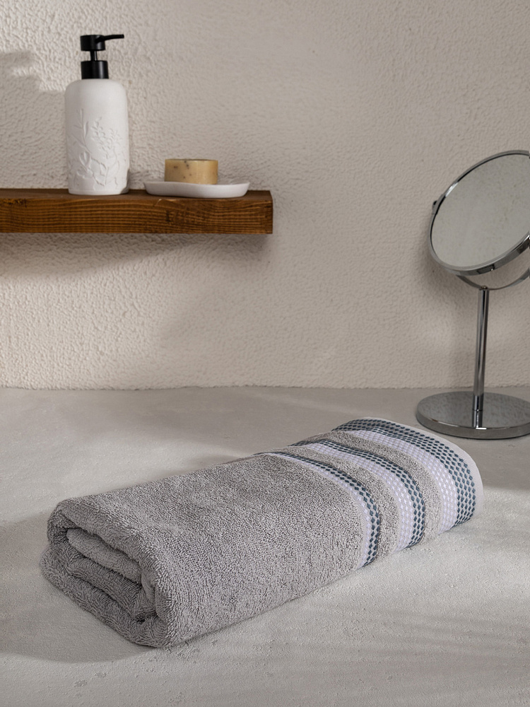 Полотенце махровое LUCKY Бордюр точки 450gsm 70x140 100% хлопок, темно-серый D100405