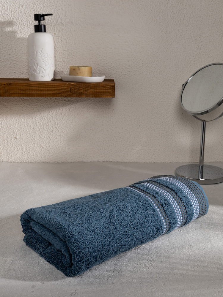 Полотенце махровое LUCKY Бордюр точки 450gsm 70x140 100% хлопок, темно-синий D100404