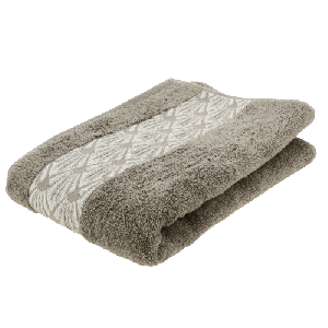 Полотенце Dardo покоряет своей лаконичностью. Приглушенные цвета помогают передать современную интерпретацию роскоши в стиле ар-деко. Бордюр декорирован геометрическими формами в виде стрел, дополнен эффектом плиссе и блеском благородного металла с помощью серебряной полиэфирной нити.