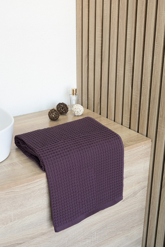 Полотенце вафельное 90x150см DE'NASTIA для бани/сауны 300гр марсала хлопок