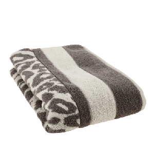 Принт хищника с намеком на этнику актуален во всех сферах – одежде, аксессуарах, дизайне интерьеров. Его может быть много, а может быть только намек, но это будет одинаково модно и востребовано. Сочетание ванильного с бежевым украсило махровое полотенце звериным узором. Полотно дополнено не менее оригинальными поперечными полосами