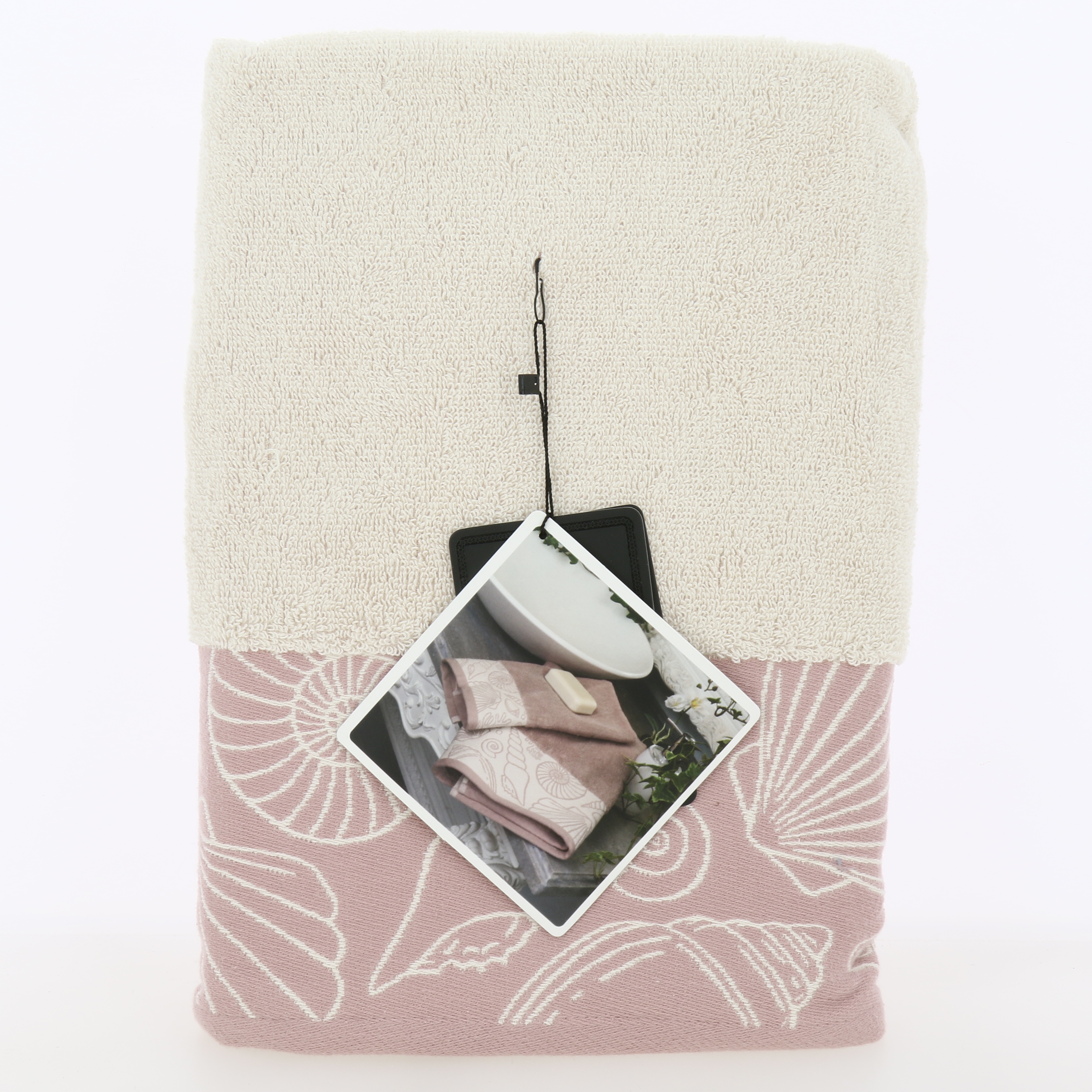 Полотенце 70х130см DE'NASTIA РАКУШКИ (новые) молочный/розовый хлопок