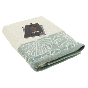 Полотенце 70х130см DE'NASTIA ТРОПИКИ (новые) молочный/зелёный хлопок