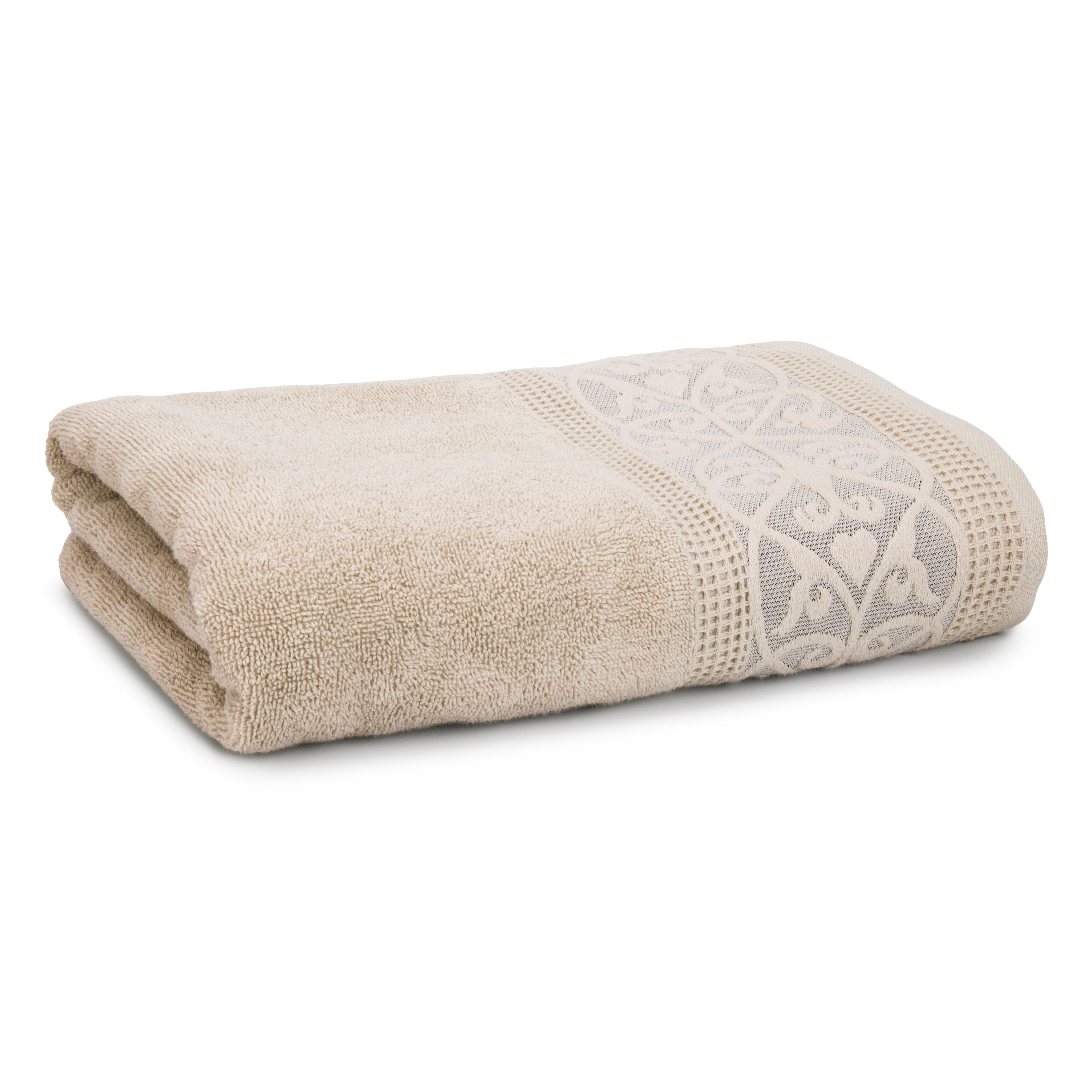 Полотенце махровое 70х130см LUCKY Вензельный бордюр светло-бежевый хлопок 100%
