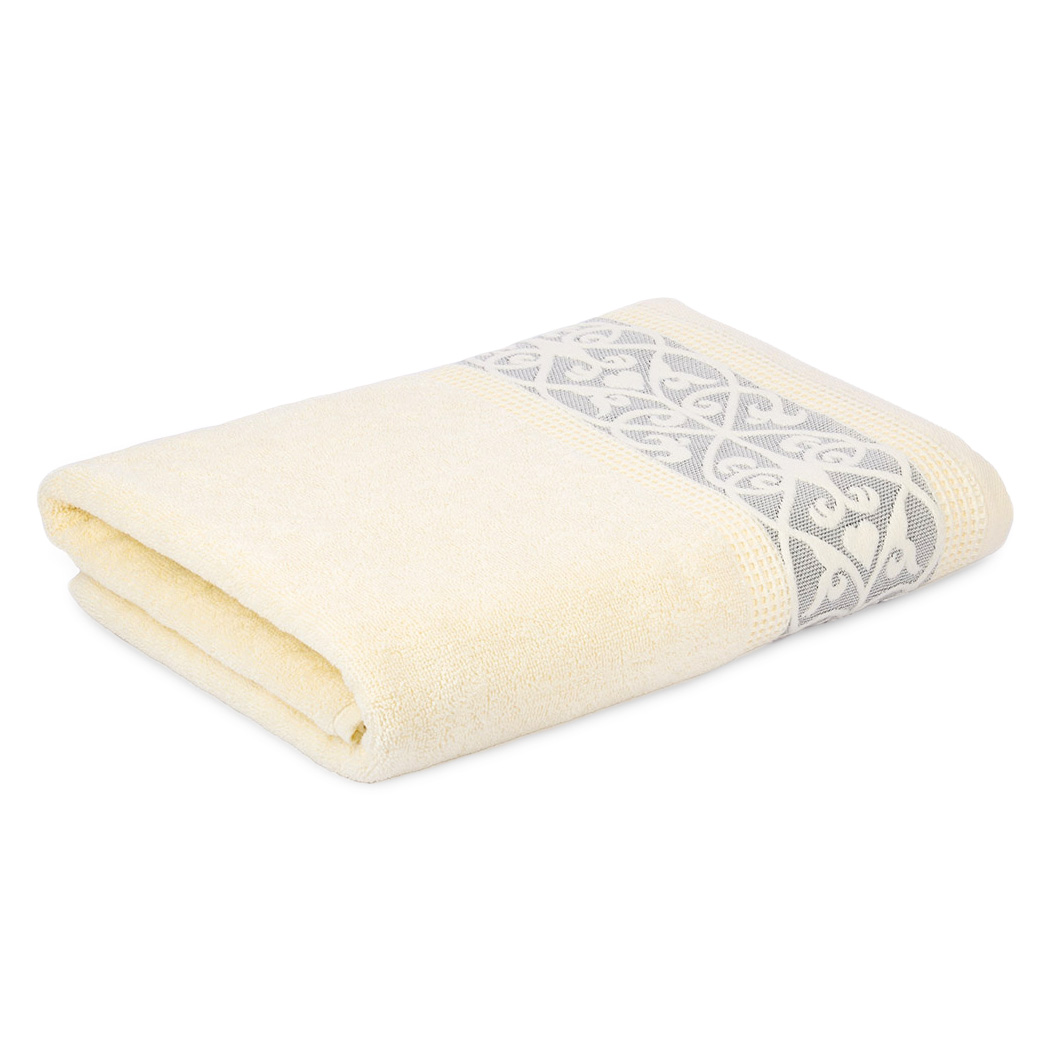 Полотенце махровое 70х130см DINA ME Вензельный бордюр молочный плотность 480гр/м 100%хлопок