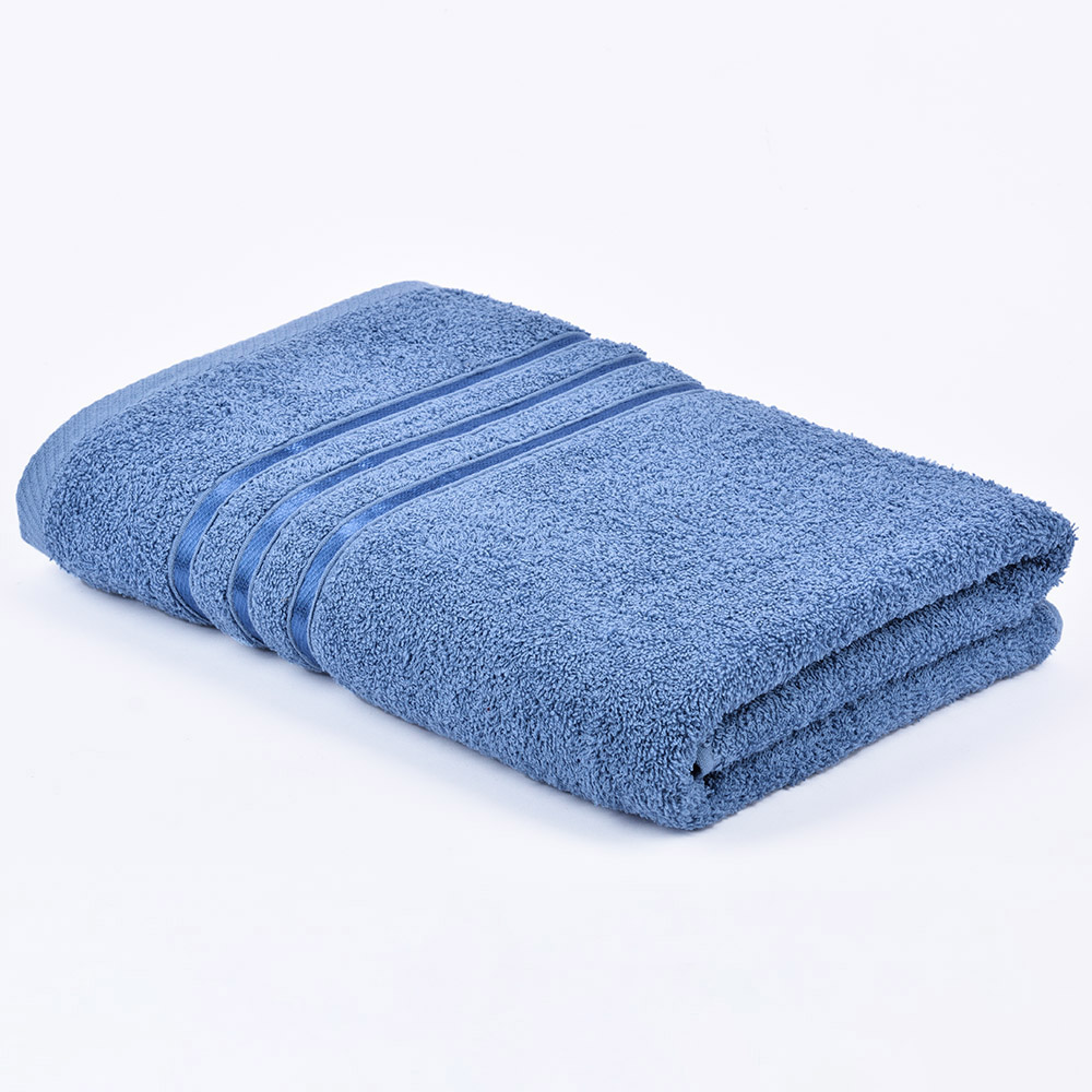 Полотенце махровое 70х130см СОФТИ бордюр с 3 полосками синее плотность 400гр/м 100% хлопок