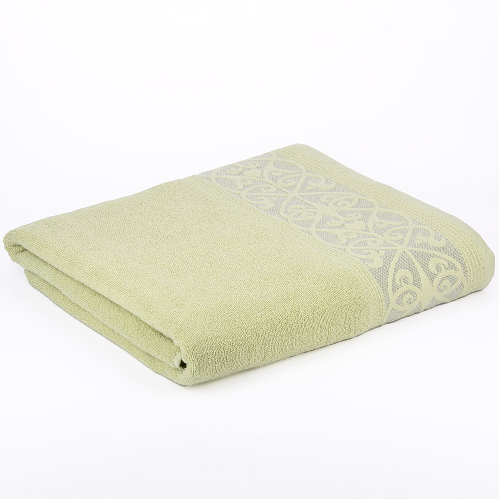 Полотенце махровое 100х150см LUCKY Вензельный бордюр светло-зеленый хлопок 100%