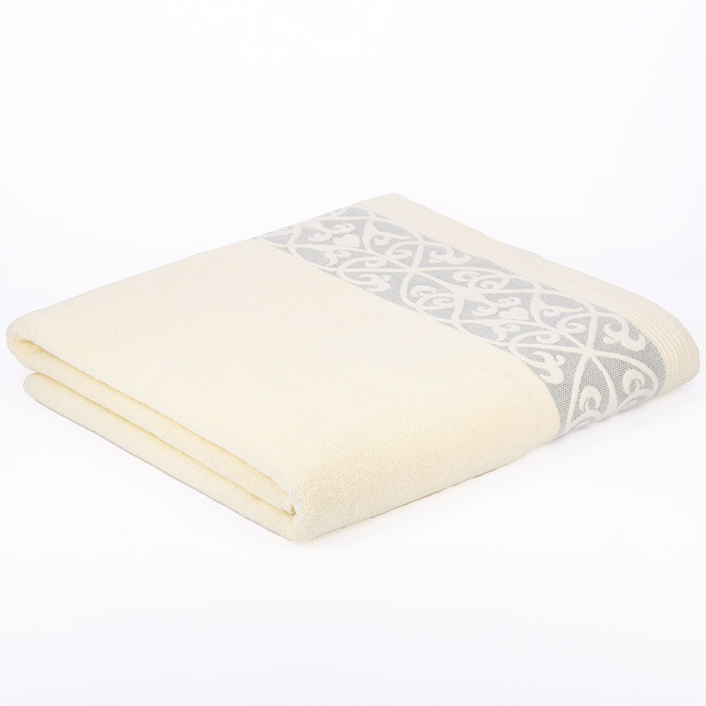 Полотенце махровое 100х150см DINA ME Вензельный бордюр молочное хлопок