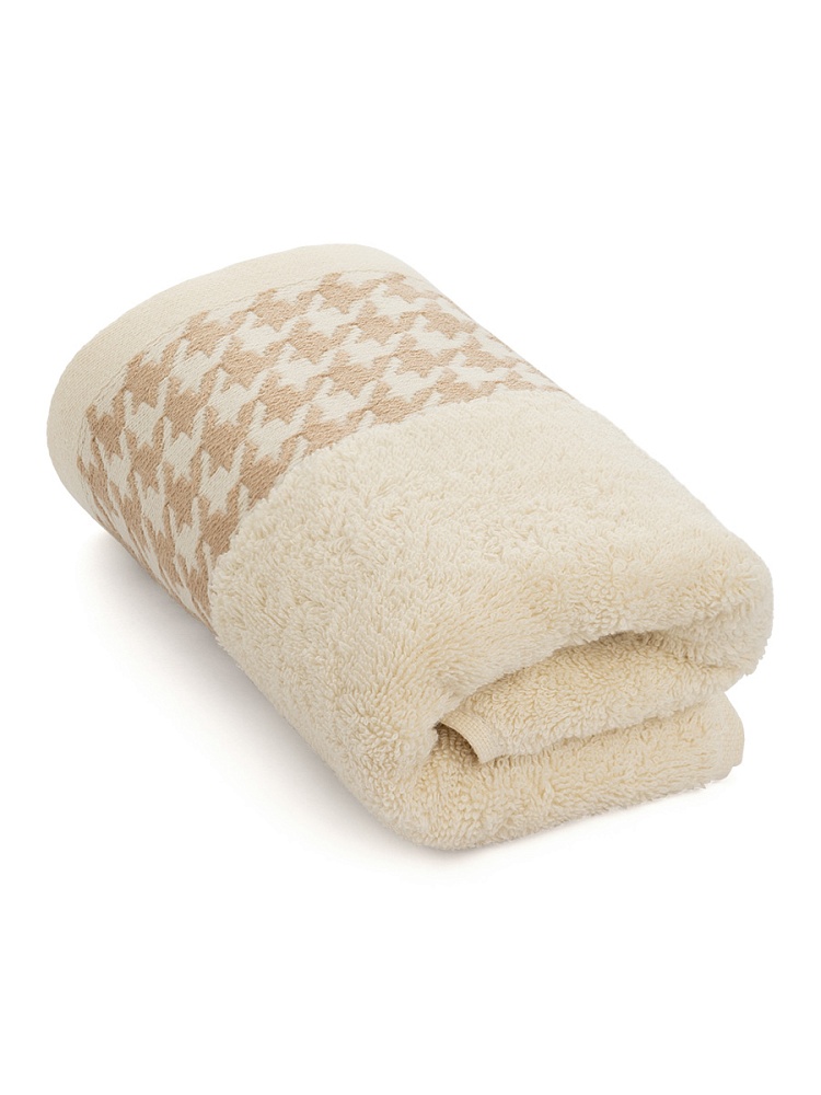 Полотенце махровое 50x90см DE'NASTIA Бордюр гусиная лапка молочный хлопок 100%
