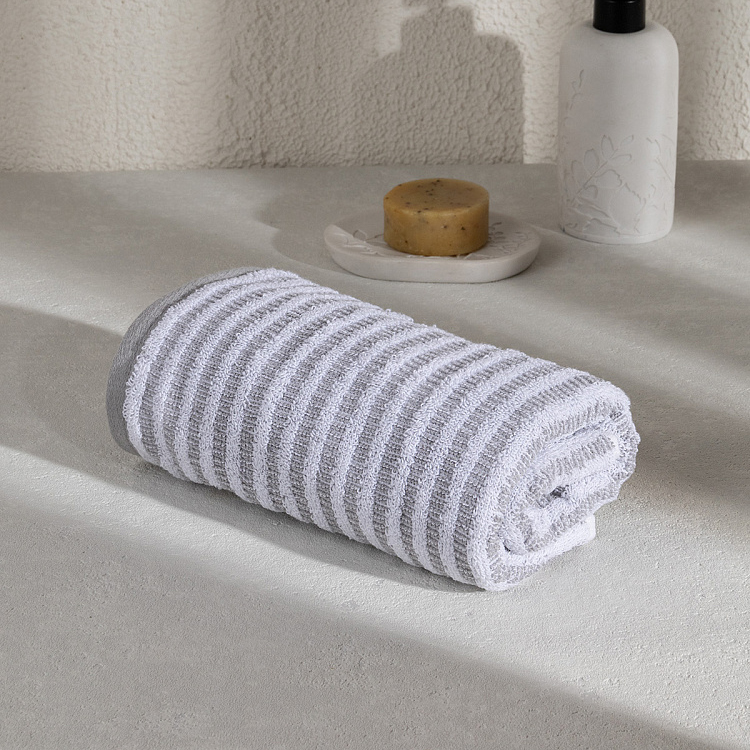 Полотенце махровое 50x90см DE'NASTIA Motive полоски 510гр серый хлопок