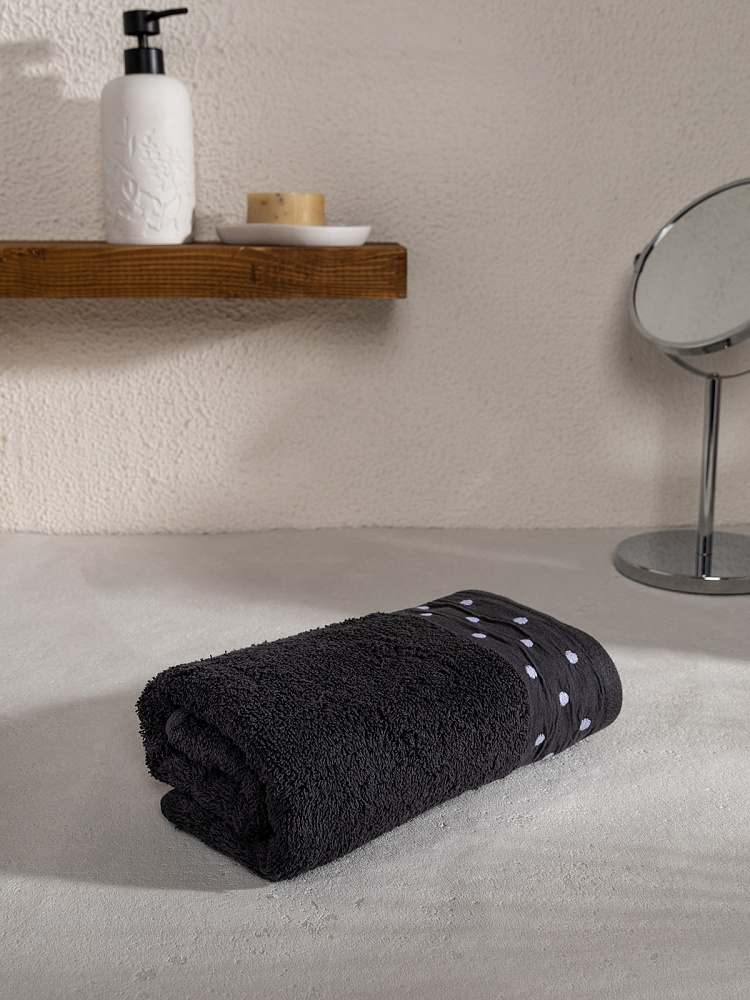 Полотенце махровое 50x90см LUCKY Бордюр горошек графит хлопок