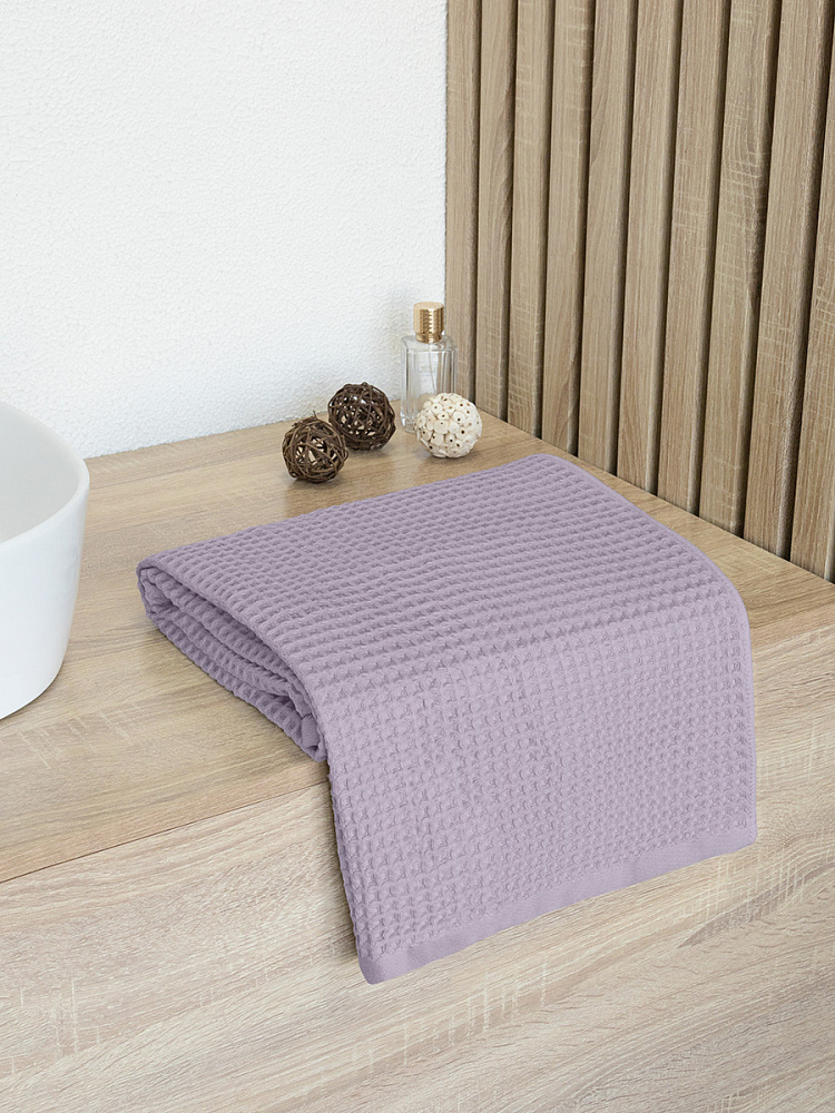 Полотенце вафельное 50x90см DE'NASTIA для бани/сауны 300гр лавандовый хлопок
