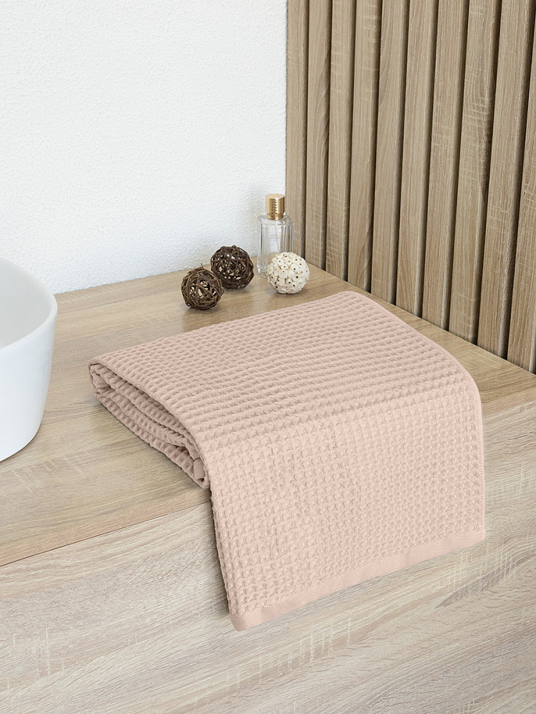 Полотенце вафельное 50x90см DE'NASTIA для бани/сауны 300гр бежевый хлопок