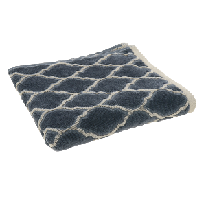 Полотенце для лица выполнено из натуральной хлопковой пряжи. Изделие украшено узором в виде кованой венецианской решетки. Объемный сюжет передан сочетанием светлого серо-бежевого и базальтового серо-синего оттенков, а также стрижеными петлями и ткацким переплетением, при котором длинные нити находятся на обратной стороне полотна. Изделие средней плотности сохраняет насыщенность цвета, мягкость и первоначальный размер даже после многократных стирок. Махровое полотенце деликатно ухаживает за кожей лица, повышая ее тургор.