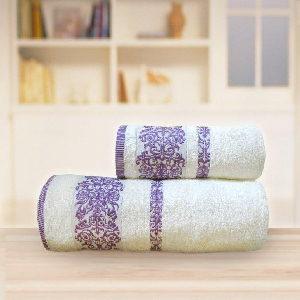 Махровое полотенце производства Азербайджан, из качественной 100% хлопковой пряжи. Нежный цвет полотенца контрастирует с красивым жаккардовым бордюром. Полотенце очень украсит вашу ванную комнату! Плотность полотенца 360г/м2.