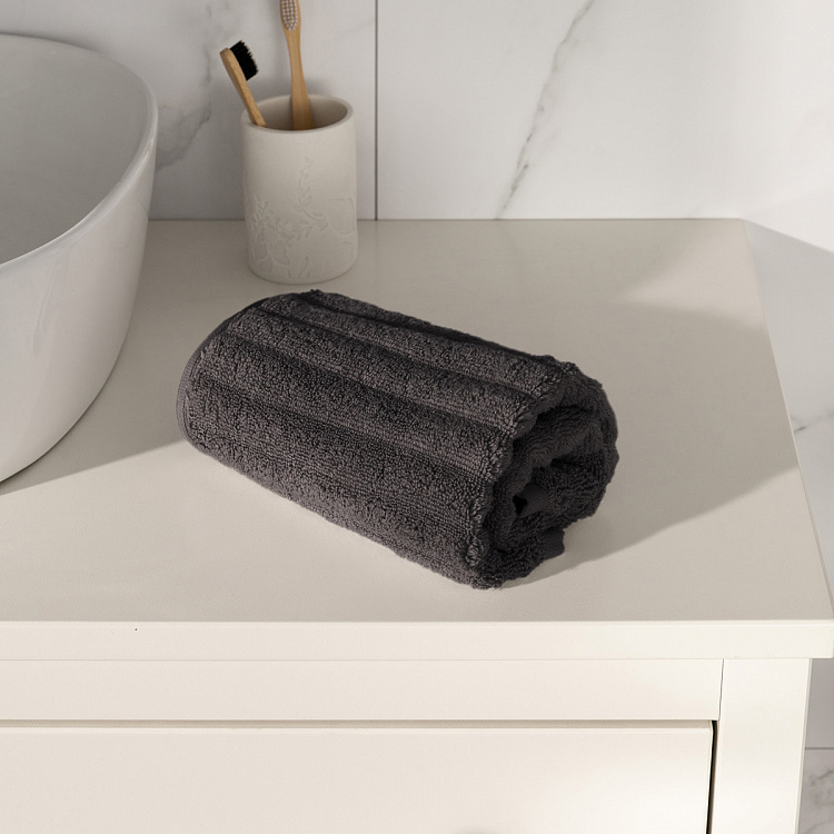 Полотенце махровое 40x60см DE'NASTIA Узкая Волна 500гр темно-серый хлопок