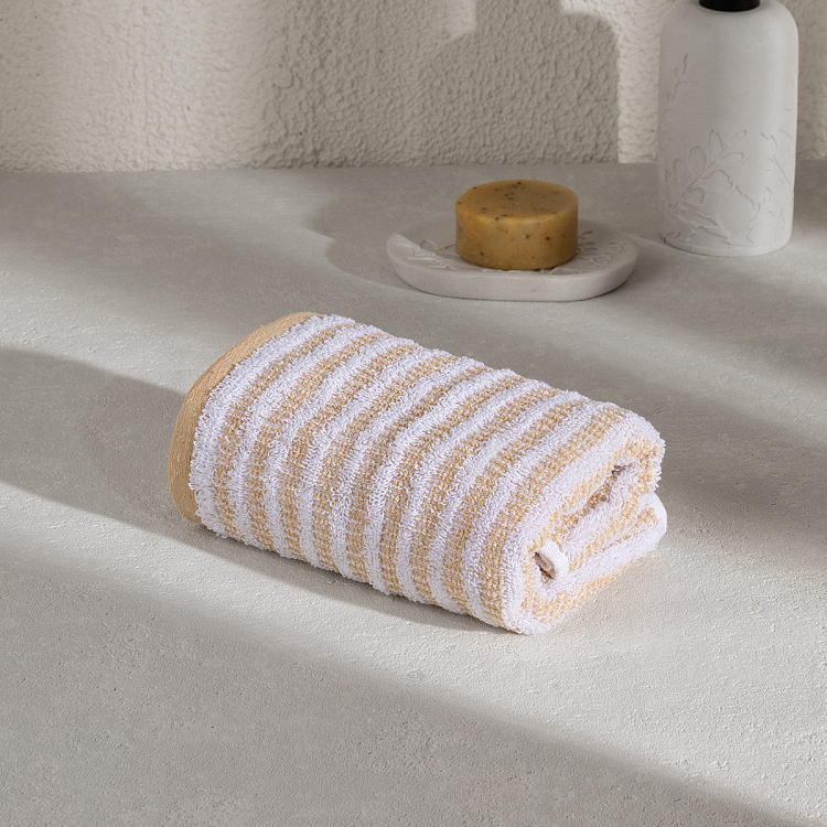 Полотенце махровое 35x70см DE'NASTIA Motive полоски 510гр бежевый хлопок