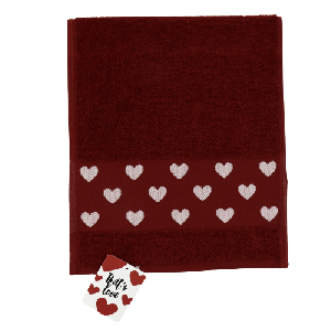 Махровое полотенце ЭТЕЛЬ Это любовь выполнено из хлопковой пряжи. Махра из натурального хлопка придает изделию особую мягкость. Полотенце представлено в красном цвете. Изделие декорировано цветным полиэфиром в бордюре. Хлопковая ткань гипоаллергенна, хорошо впитывает влагу, обладает высокой воздухопроницаемостью и устойчивостью к воздействию ультрафиолетовых лучей.Полотенце выдерживает большое количество стирок, сохраняя яркую расцветку, его можно стирать в стиральной машине.