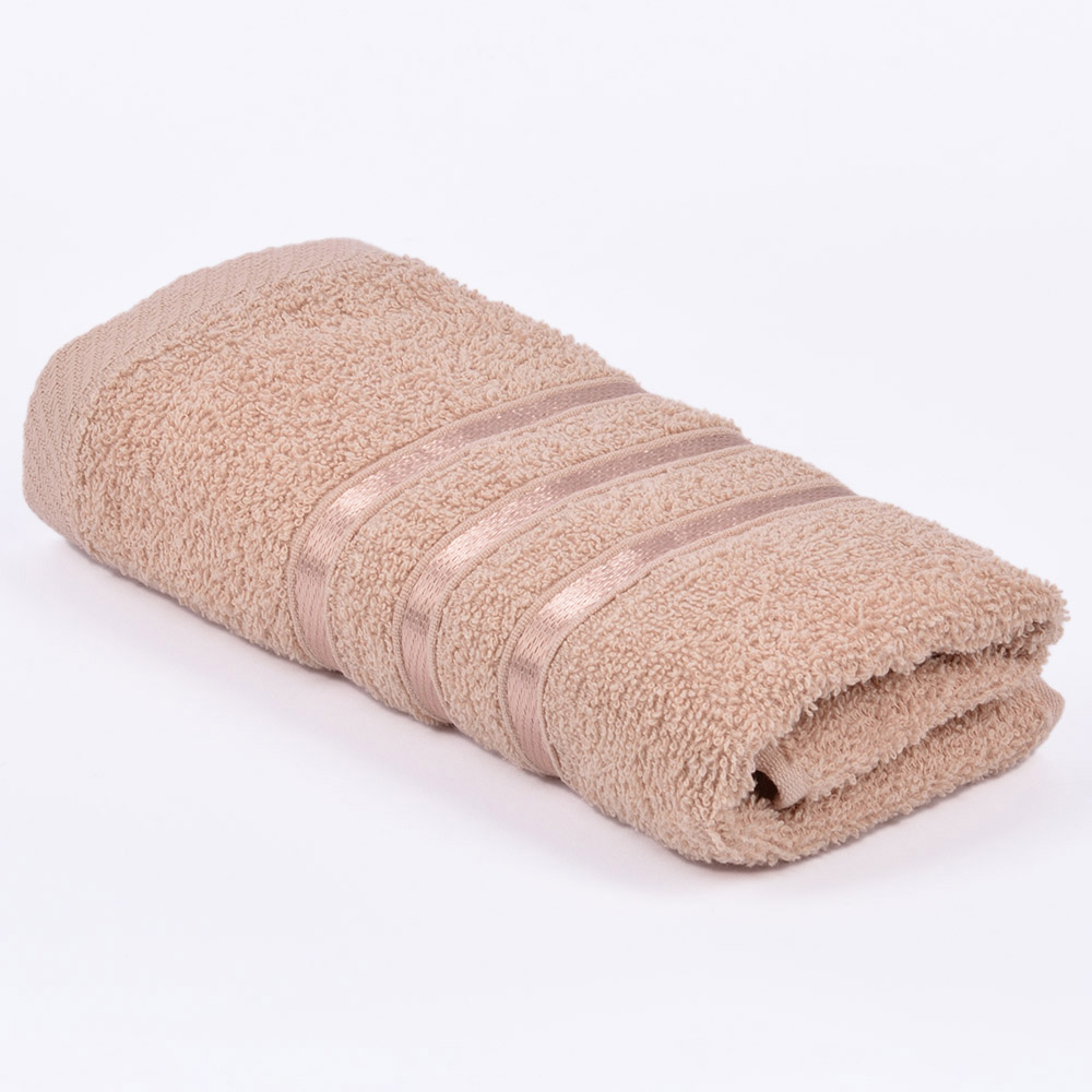 Полотенце махровое 30х60см СОФТИ бордюр с 3 полосками бежевое плотность 380гр/м 100% хлопок