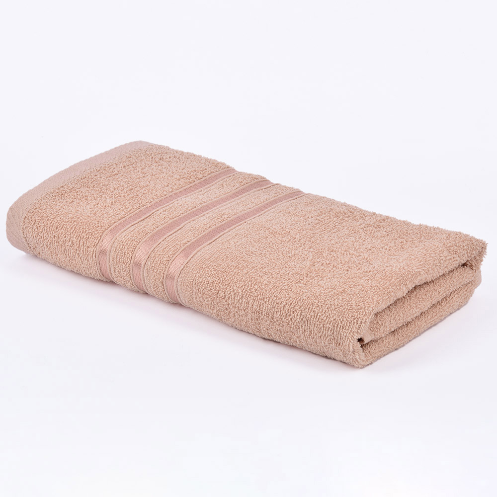 Полотенце махровое 50х90см СОФТИ бордюр 3 полоски бежевый хлопок 100%