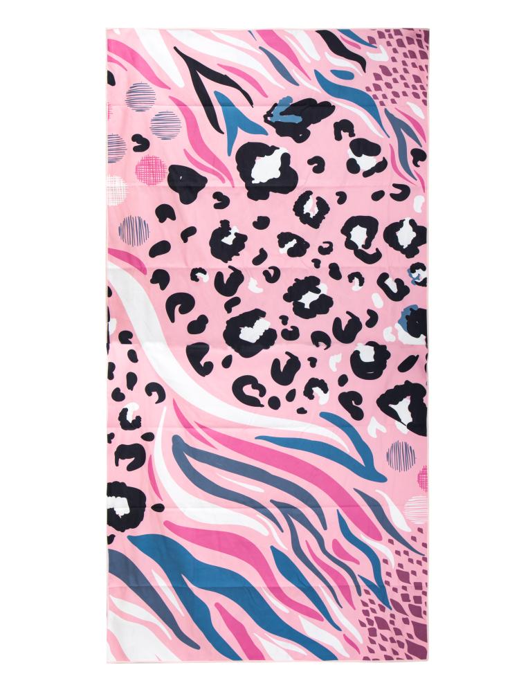 Полотенце пляжное с чехлом 75х150см Розовый гепард микрофибра полиэстер
