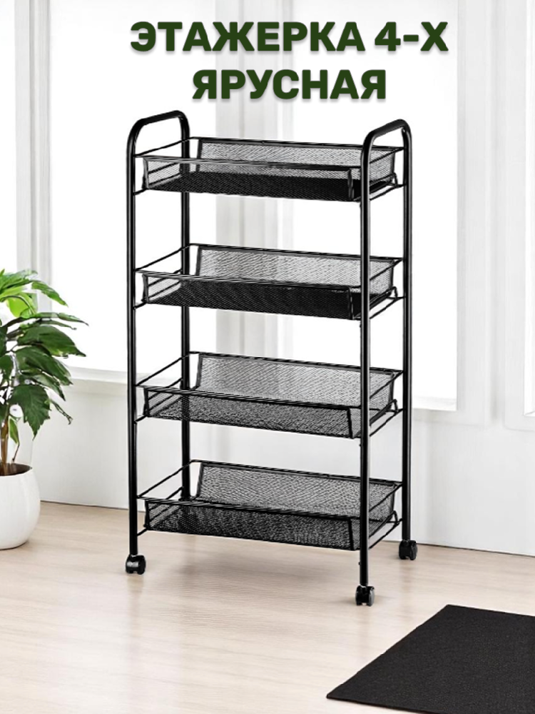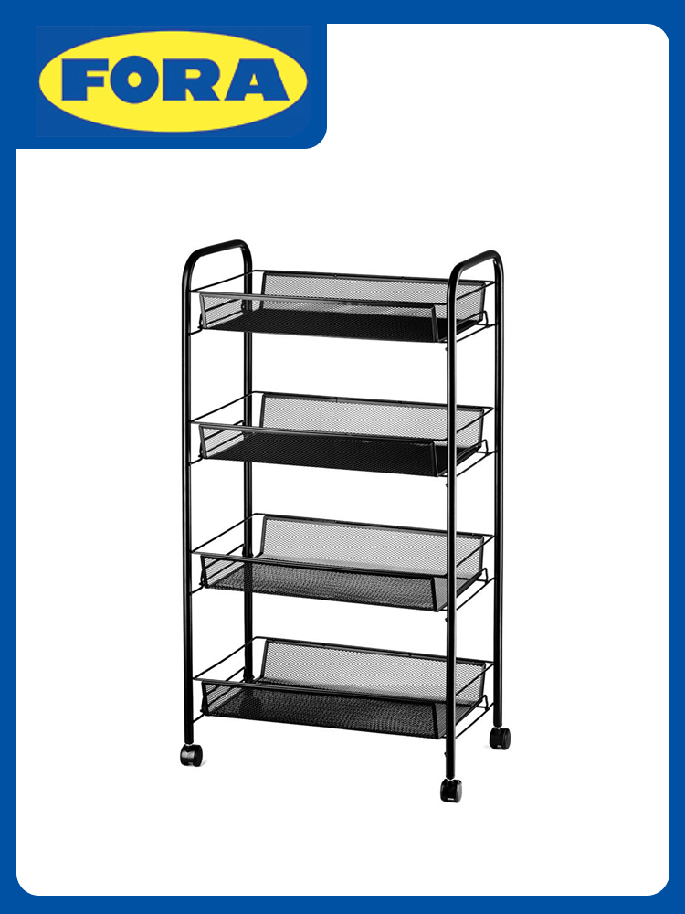 Этажерка 4-х ярусная 84х25х48см FORA сетка на колесиках черный металл