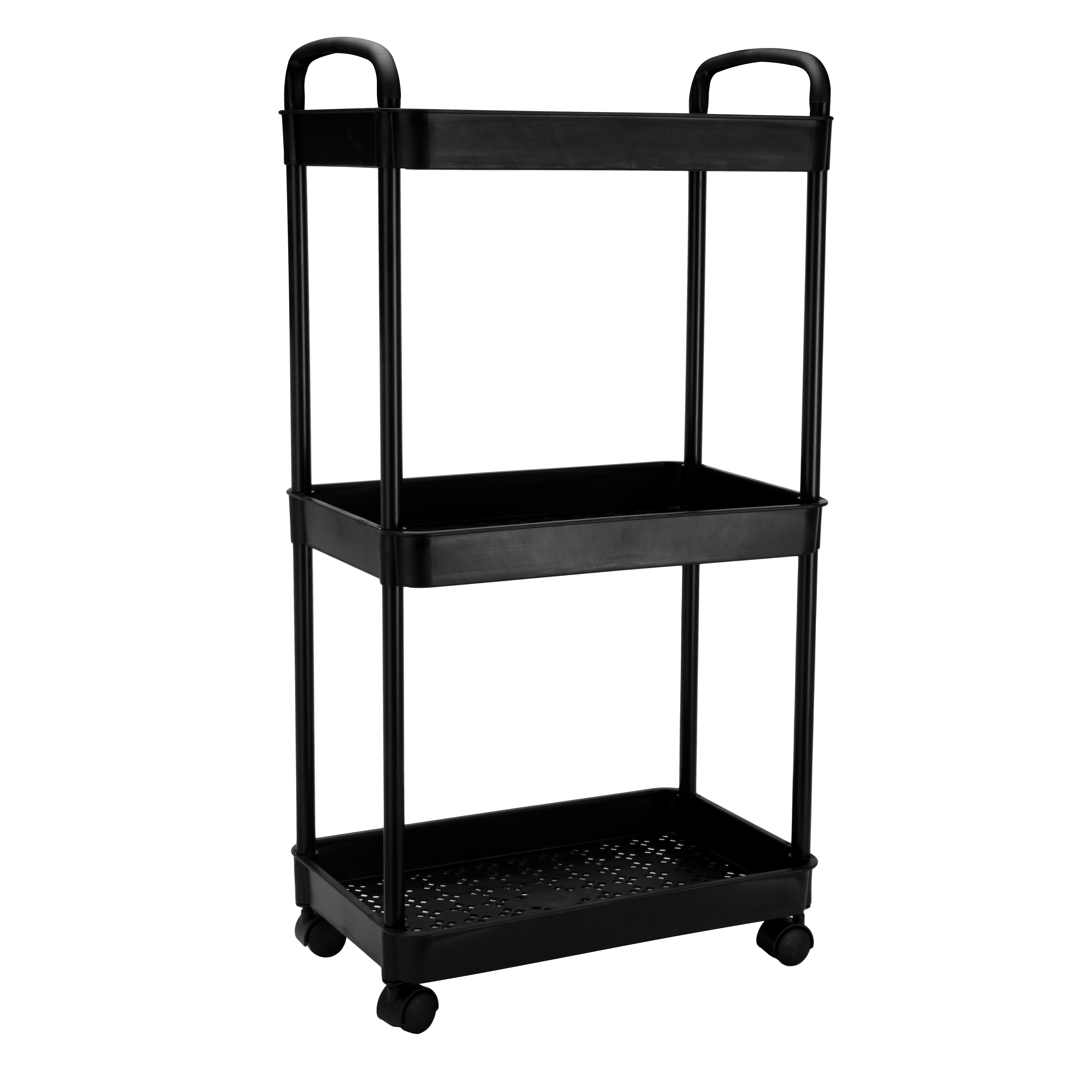 Этажерка 3-х ярусная 36х25,5х72см LUCKY на колесиках черный пластик