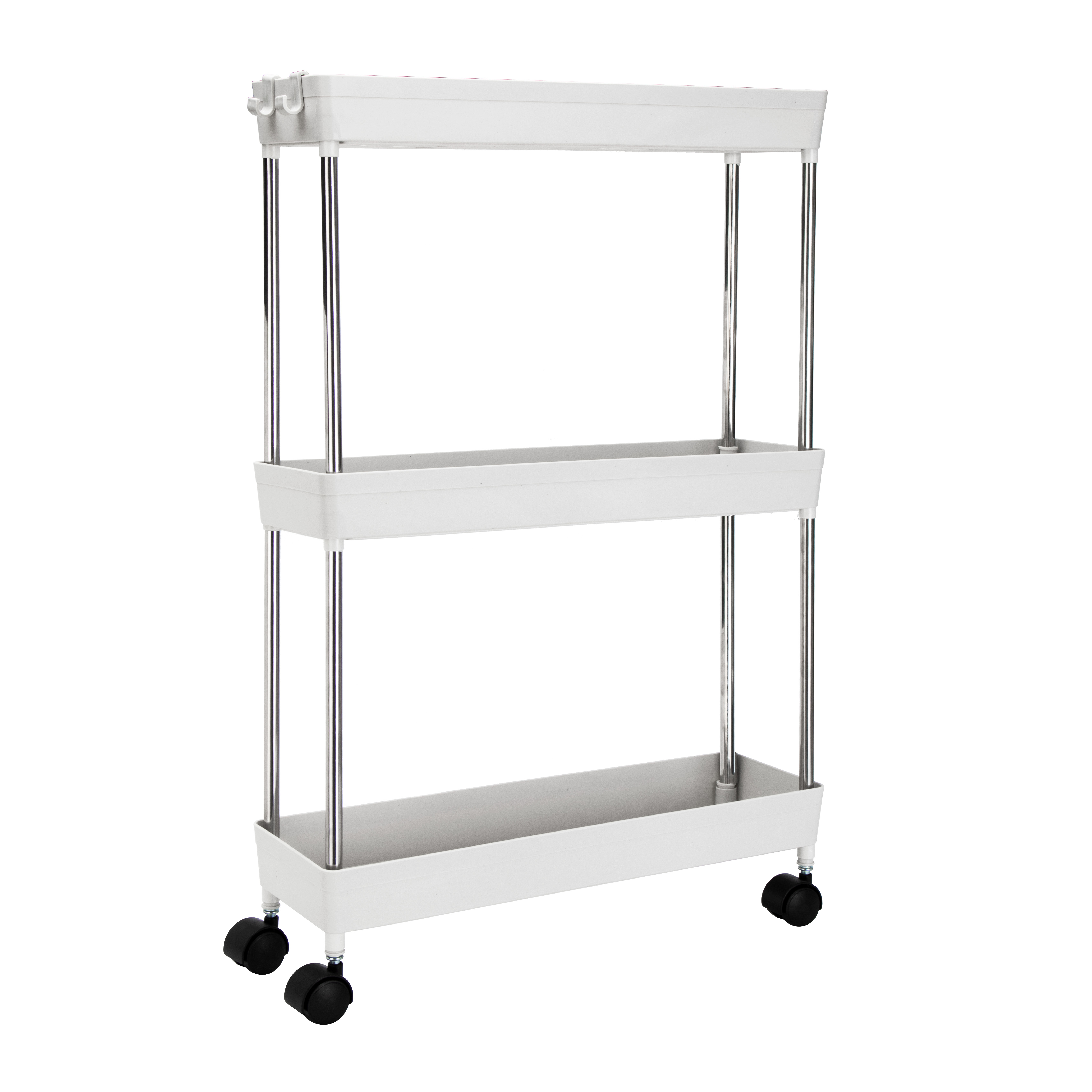 Этажерка 3-х ярусная 40х12х64см LUCKY на колесиках белый пластик
