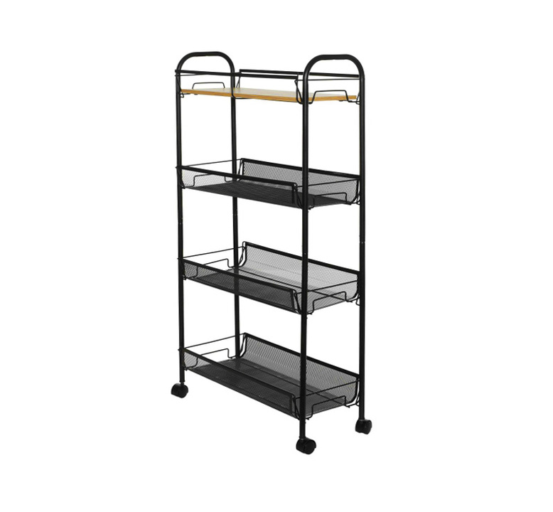 Этажерка 4-х ярусная 43,8х19,1х82,9см FORA сетка на колесиках черный металл/МДФ
