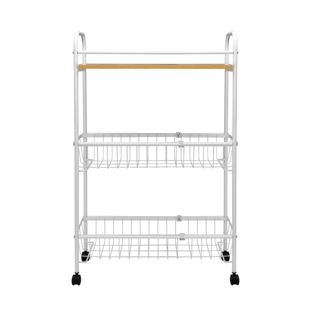Этажерка 3-х ярусная 50,4x20,2x79,7см FORA сетка на колесиках белый металл/МДФ