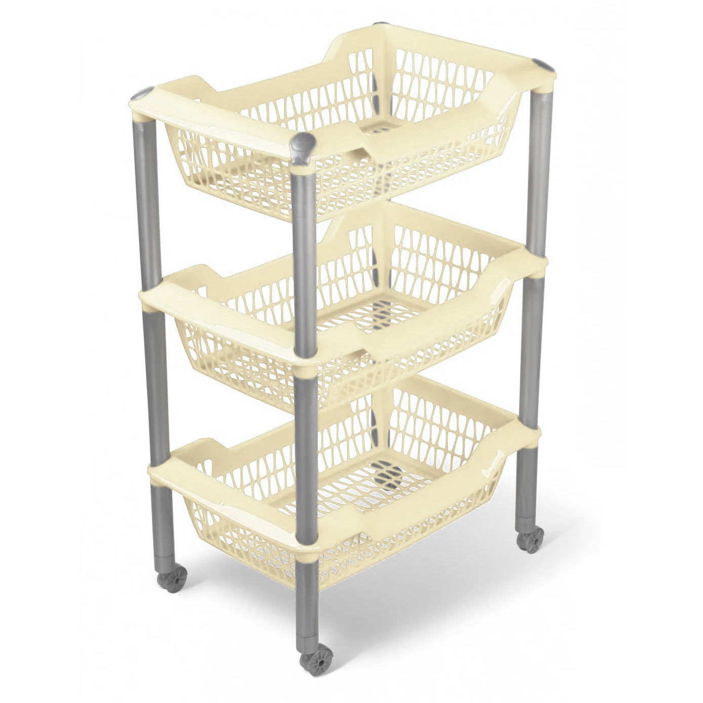 Этажерка универсальная 3 полки 44x30,4x66,5см MARTIKA Джета на колесиках слоновая кость пластик