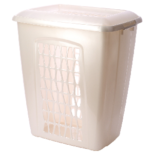 Корзина для белья 45л MARTIKA Молетта прямоугольная с крышкой перламутрово-белая пластик